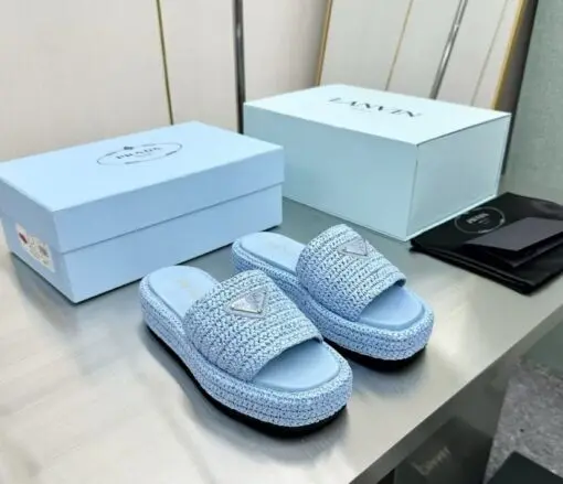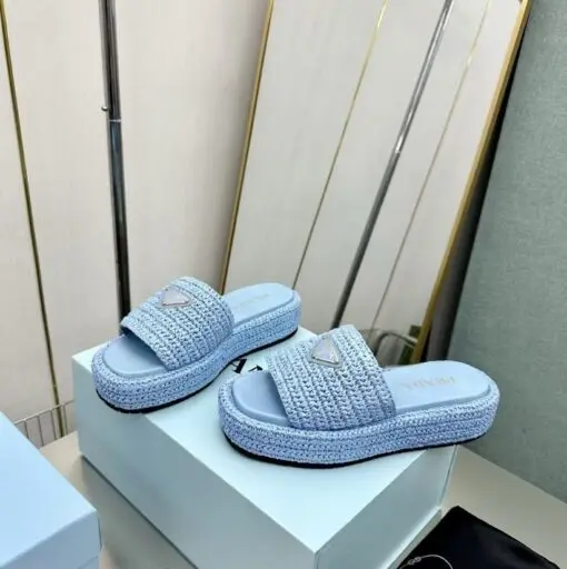 Prada Crochet flatform slides sky blue