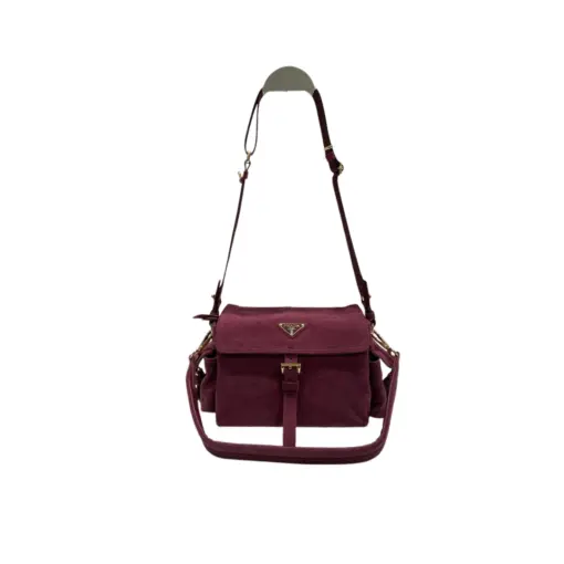 Prada Explore Medium Suede Shoulder Bag Flap Burgundy