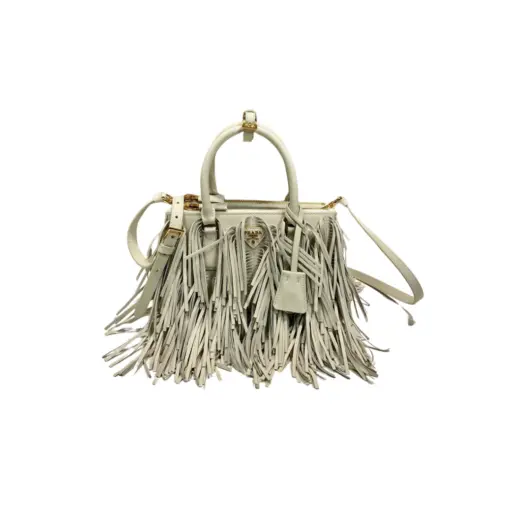 Prada Galleria Small Leather Bag Fringe White