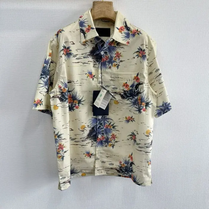 Prada Hawaii Print Bowling Shirt Yellow