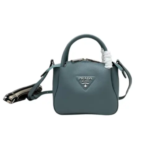 Prada Mini Leather Top Handle Bag Light Blue Gray Leather