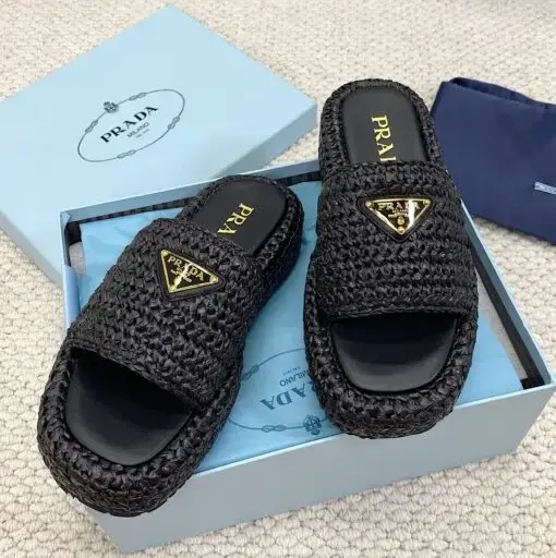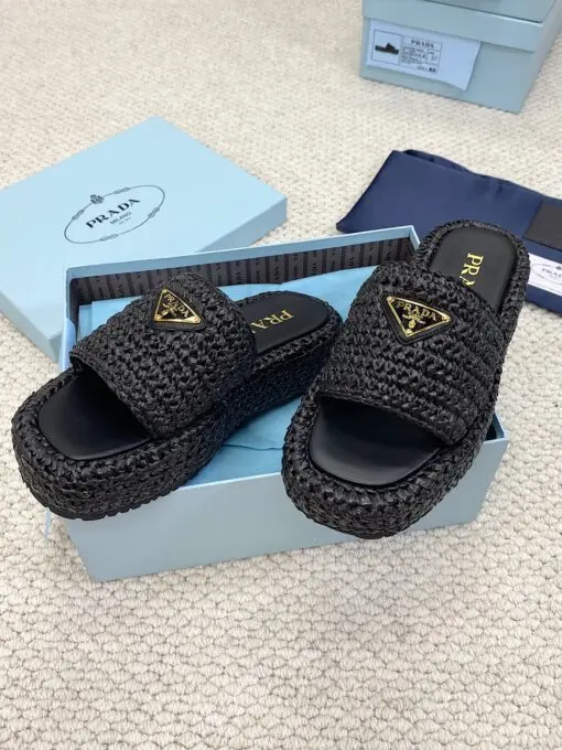 Prada Raffia Flatform Slide Sandal White Black