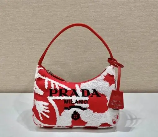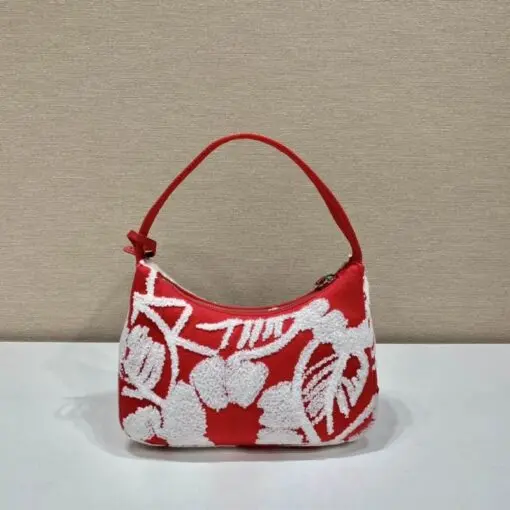 Prada Re-Edition 2006 Embroidered Drill Mini Bag in Red & White