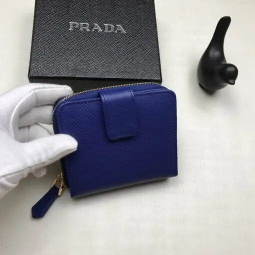 Prada Saffiano Bi-fold Wallet Leather Blue