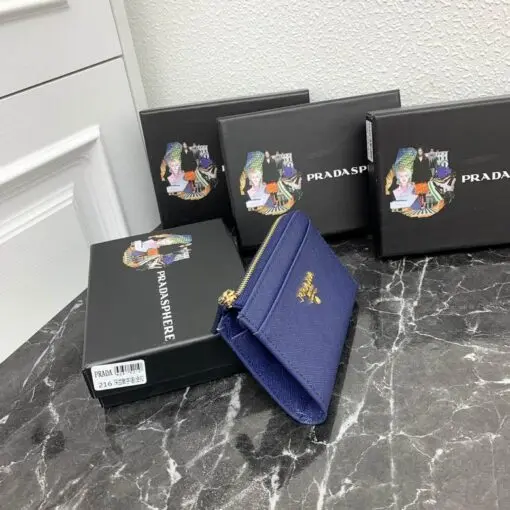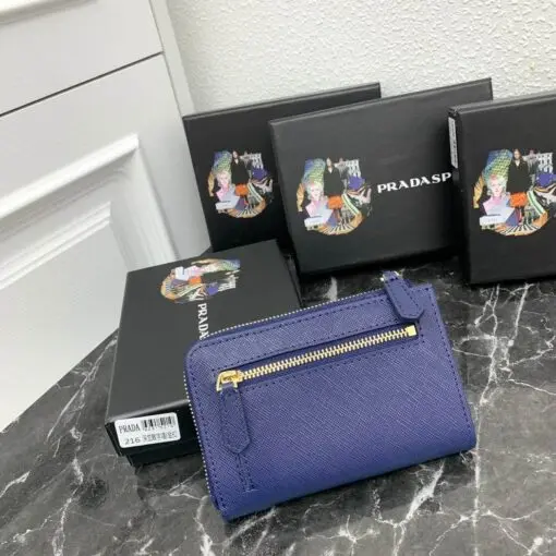 Prada Saffiano Keychain Wallet Blue