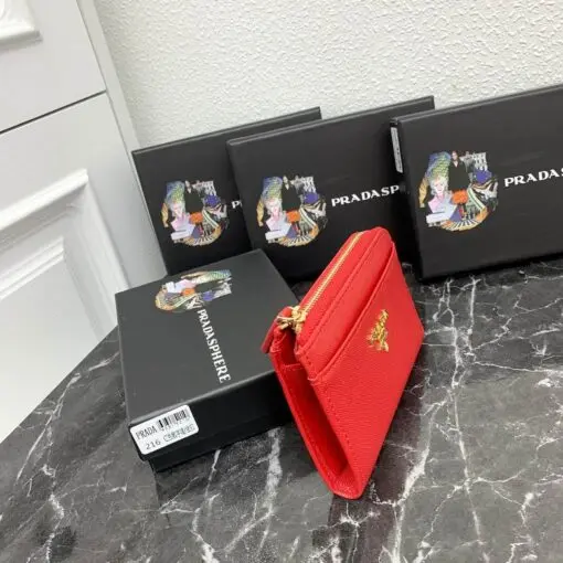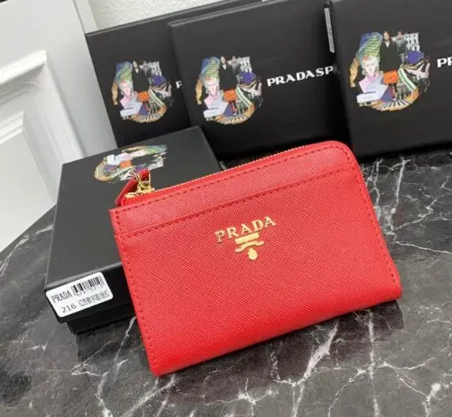 Prada Saffiano Keychain Wallet Red