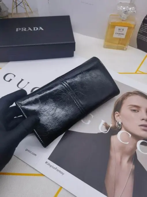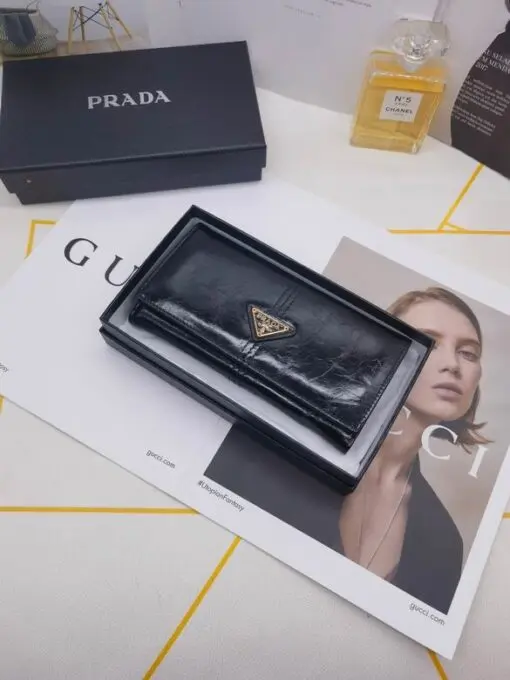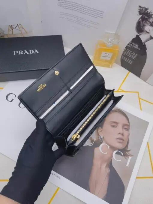 Prada Saffiano Leather Long Wallet Glossy Black