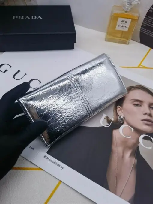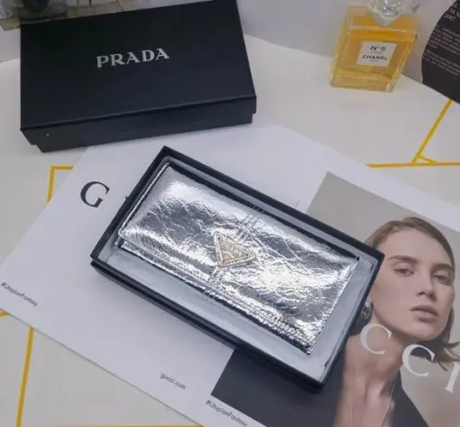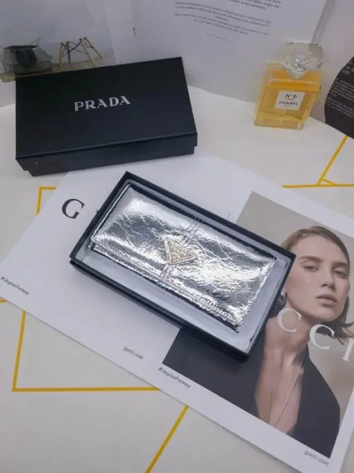 Prada Saffiano Leather Long Wallet Glossy Sliver