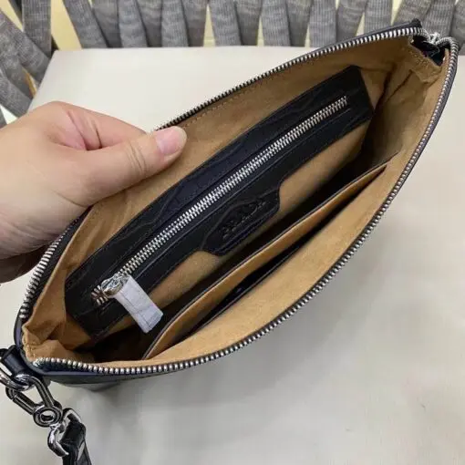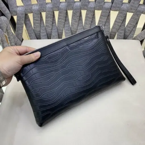 Prada Saffiano Leather Pouch Wallet Crocodile Black