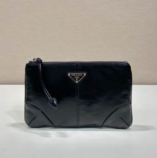 Prada Saffiano Leather Pouch Wallet Glossy Black