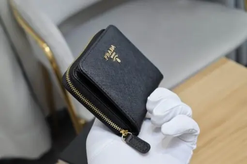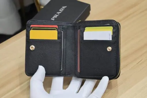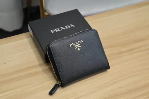Prada Saffiano Leather Wallet Zip-Around Style Black