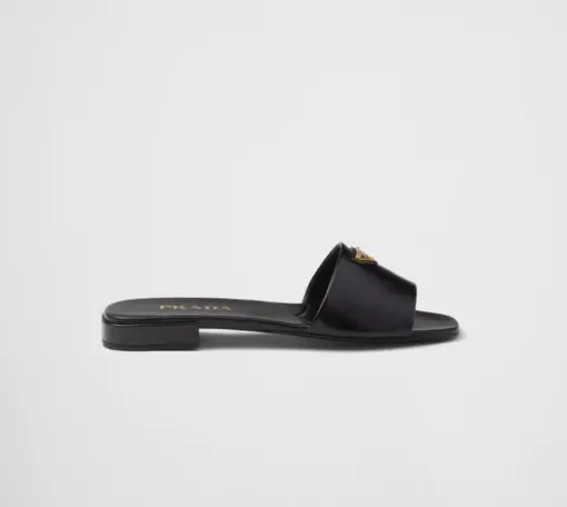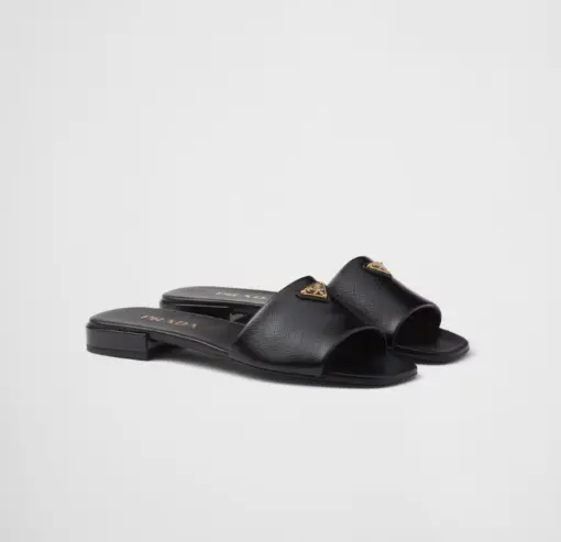 Prada Saffiano patent leather slides black
