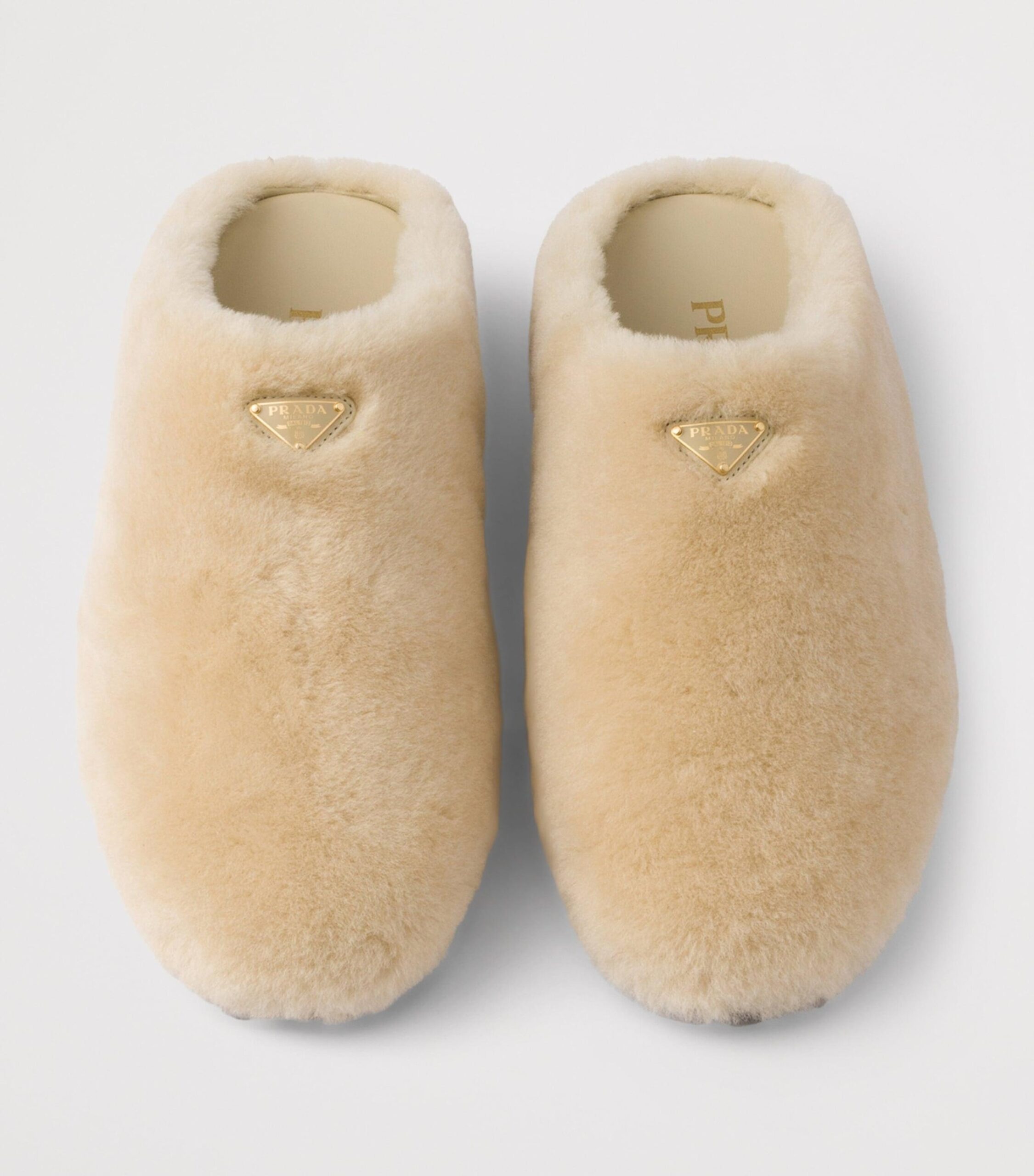 Prada Shearling Mules Beige