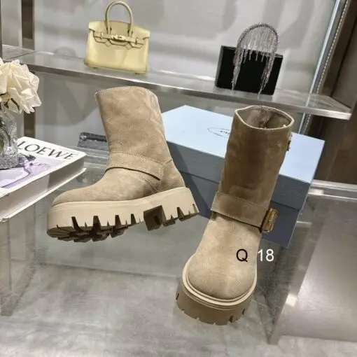 Prada Suede Boots All Beige