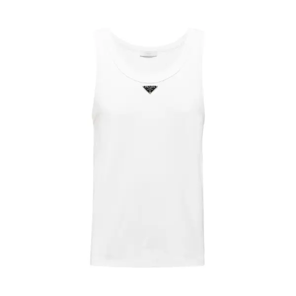 Prada triangle-logo cotton tank top white