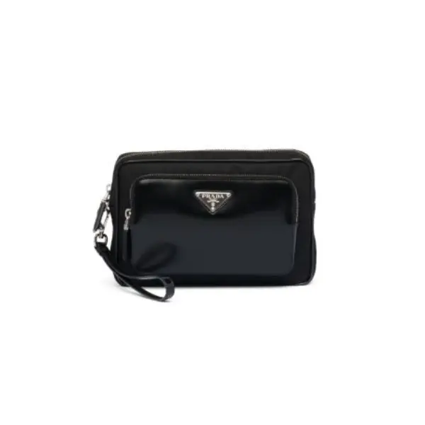 Prada triangle-logo Panelled Clutch Bag Black