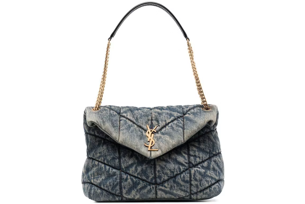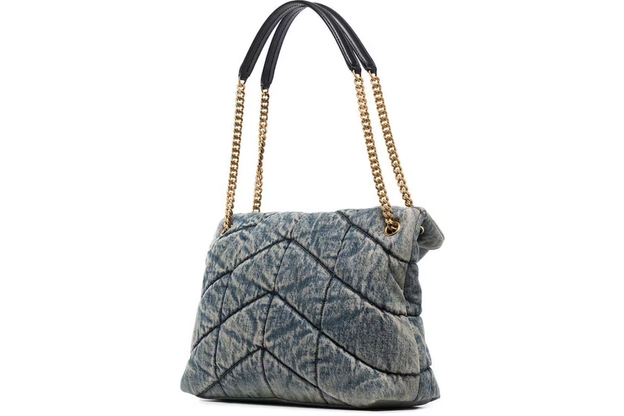 Saint Laurent Puffer Denim Shoulder Bag Blue