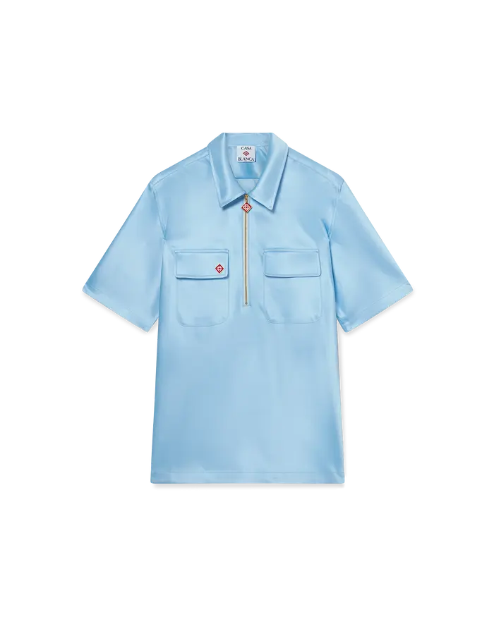Satin Quarter Zip Short Sleeve Shirt Blue