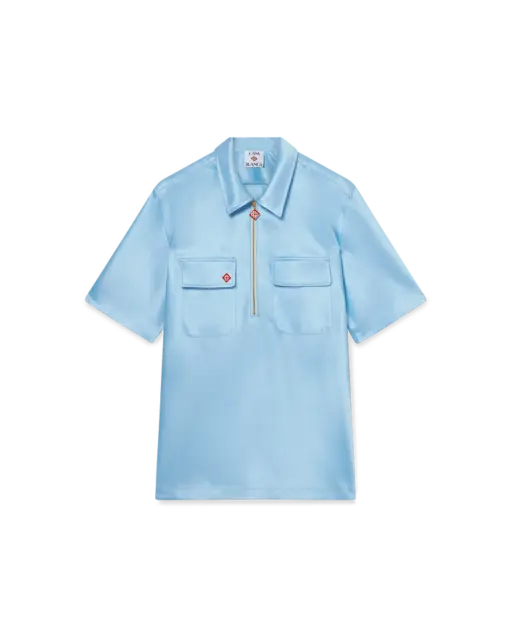 Satin Quarter Zip Short Sleeve Shirt Blue
