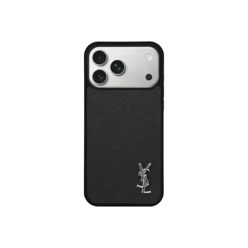 YSL Black Leather iPhone Case With Silver Logo