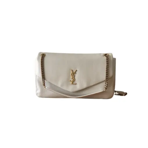 YSL Calypso Large Grained Lambskin Leather White