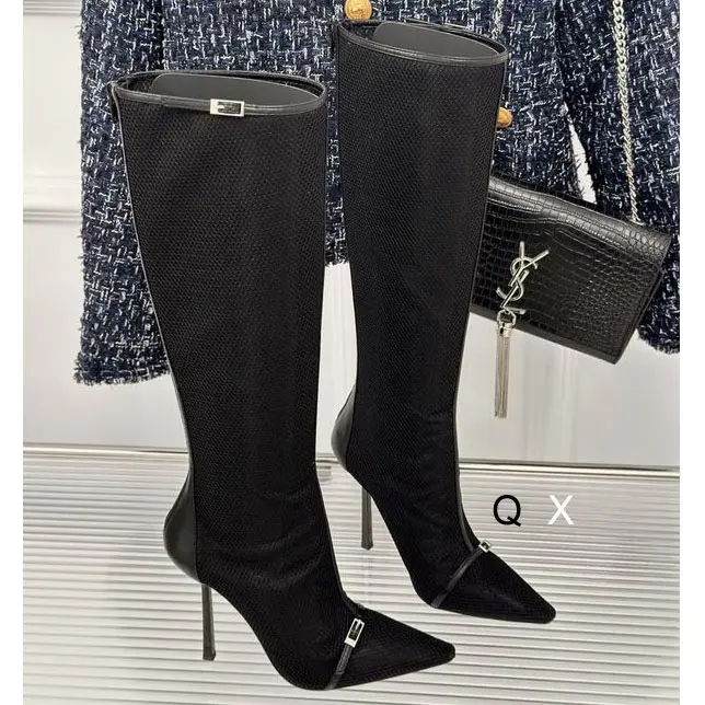 YSL Knee Suede Boots Black