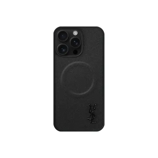 YSL Leather iPhone Case Black With Magsafe Design