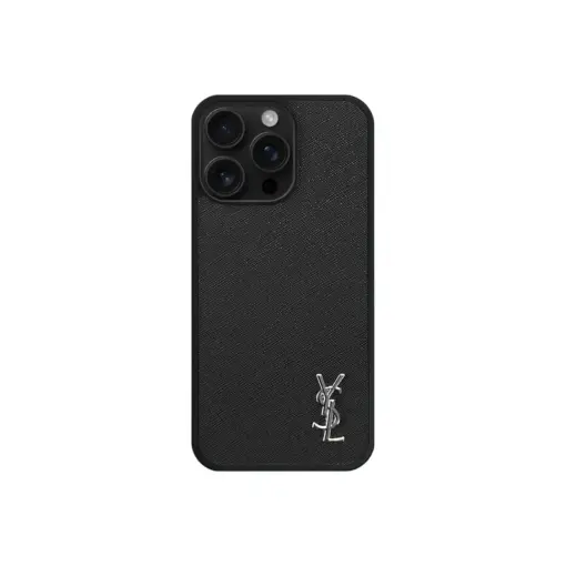 YSL Leather iPhone Case Black With Silver Logo