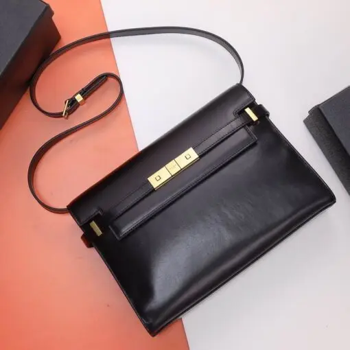 YSL Manhattan Baguette Calfskin Shoulder Bag Black