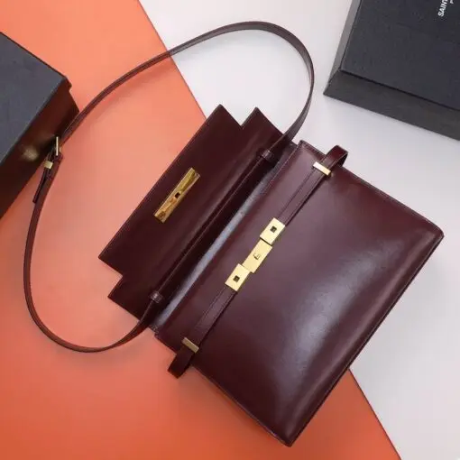 YSL Manhattan Baguette Calfskin Shoulder Bag Maroon