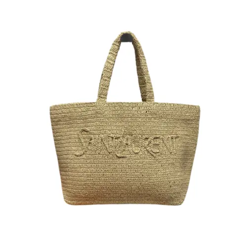 YSL Rive Gauche Raffia Tote Bag Embroidered Logo