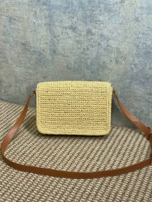 YSL Saint Laurent Solferino Medium Raffia Crossbody Bag Yellow