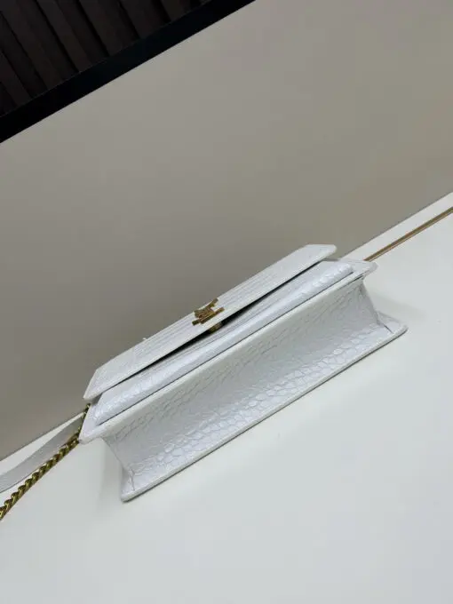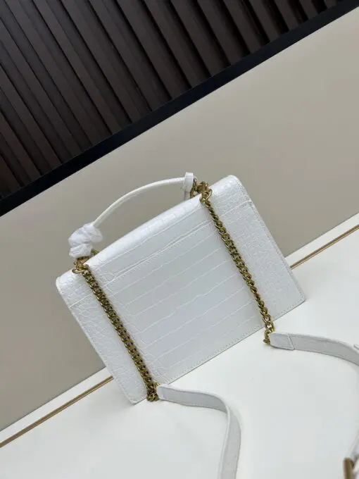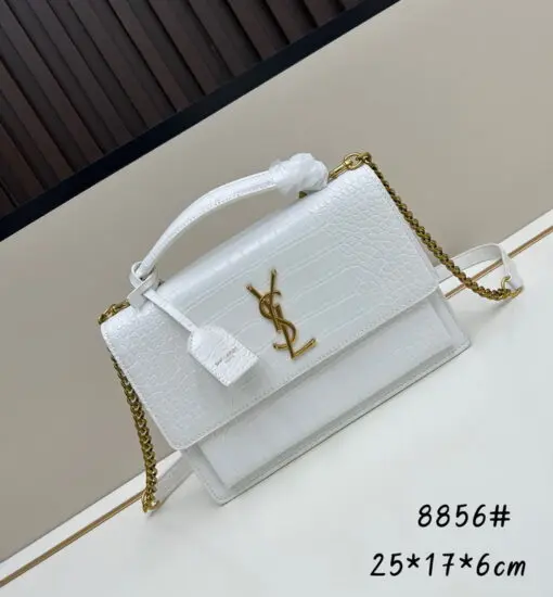YSL Sunset Medium Chain Bag in Crocodile White
