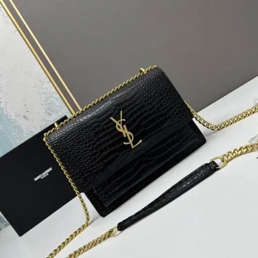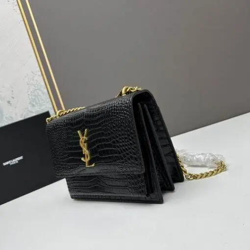 YSL Sunset Shoulder Bag 22cm Crocodile Black