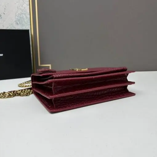 YSL Sunset Shoulder Bag 22cm Crocodile Maroon