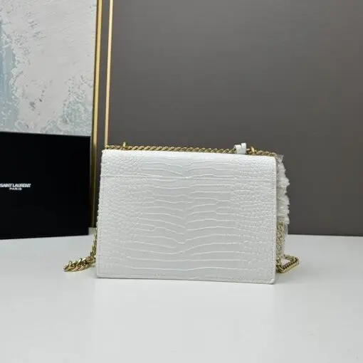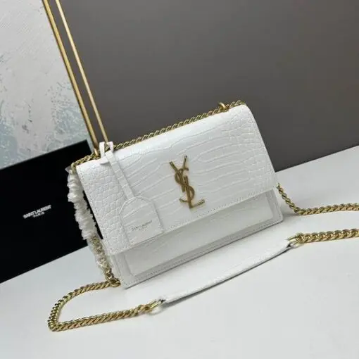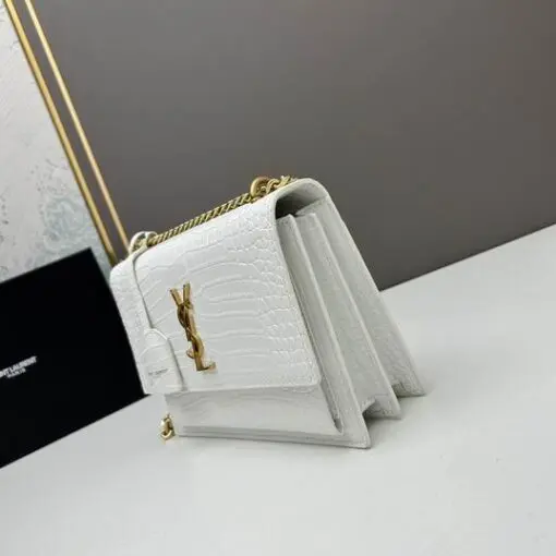 YSL Sunset Shoulder Bag 22cm Crocodile White